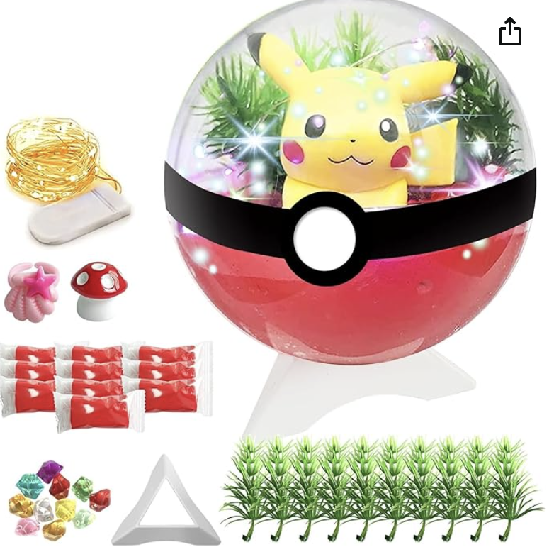 This build-your-own night light set is perfect for when your kids want to get crafty. Anyone from 4-8 years old can put it to great use. The kit includes a Terrarium jar, two rainbow string lights, toys, a variety of colored and transparent crystals, pebbles, moss, and miniature mushrooms.