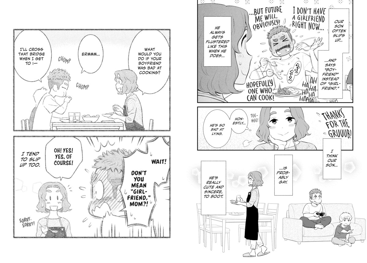 I Think Our Son Is Gay is one of those manga series that feels like it tapped into my own personal experiences and illustrated them in a cute art style. Having a mom who thinks (read: knows) that you’re gay but who patiently waits for you to say something hits me to my very core. It’s EXACTLY what happened to me, and this manga has managed to tell that story in a relatable, wholesome way.