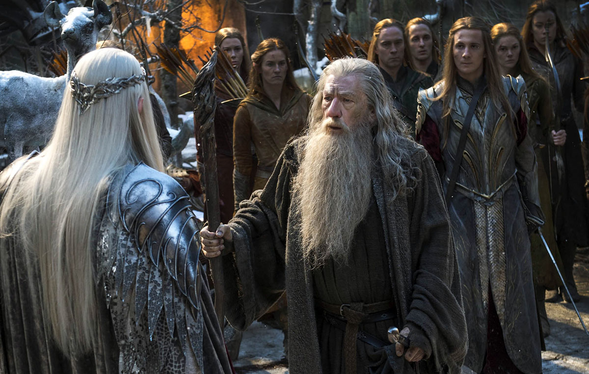 “I am happy,” he insists. “If you’re suggesting I mightn’t come back as Gandalf because the part wasn’t good enough, that wasn’t quite it. It was just a sense that I’d done it and at my age, each job might be your last. Did I want to be knocked out by an Orc forever more, when I could’ve been doing a play somewhere? In the end, there was no choice. He had to come back. I don’t think anybody refused. I was the beneficiary of dividing the plays into three, onto two because much of Gandalf’s story was well on its way to completion at the end of the original first film. There wasn’t much for him to do in part two. Now it’s all been split up, in the way it has, Gandalf’s shared over the three films in a way that is appropriate, I think, because he’s a major force. You can say that they’ve put in some new stuff. All the stuff that Gandalf has in this film was originated by Tolkien, in the appendices and elsewhere. So he knew where Gandalf had gone off to. He just didn’t put it into ‘The Hobbit.’