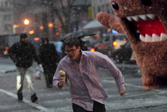This poor, innocent man has become the latest victim to the Internet’s insatiable need for PhotoShop-driven laughs. Caught in one of the sudden and brutal winter storms the man, now identified as Zach Burroughs, sought shelter for him and his frozen treat. Perhaps it was the apparent devotion to his ice cream or because he looked more like a time traveler from next summer, Burroughs has become the darling of Reddit and is the foci of many a meme mashup.