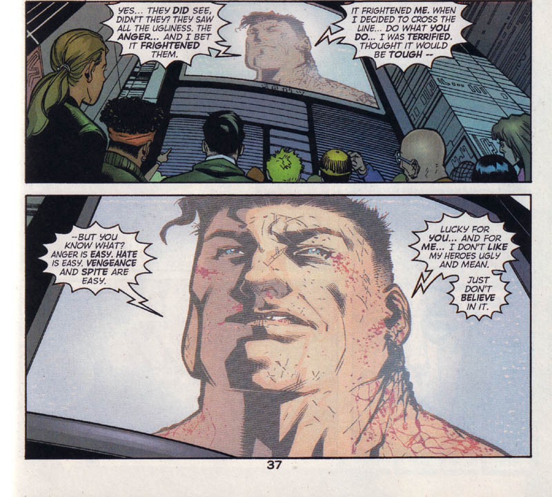 One of my all-time favorite comics is 2001’s “What’s So Funny ‘Bout Truth, Justice & the American Way?” a story written largely in response to the dark Authority series (which ironically counted Mark Millar as a member of its writing team). In this issue, Superman goes up against a team of anti-heroes called “The Elite” who use their superpowers to violently kill villains. Though they gain worldwide popularity, Superman holds the moral high ground.