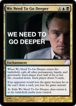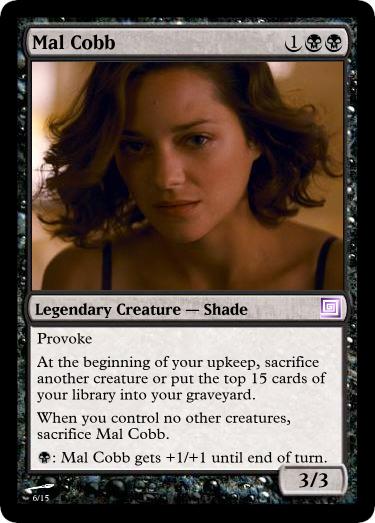 These cards were created using Magic Set Editor; the text is the author’s own. They are obviously not endorsed by or affiliated with Magic: The Gathering or Inception, but are the product of pure fan love and appreciation.