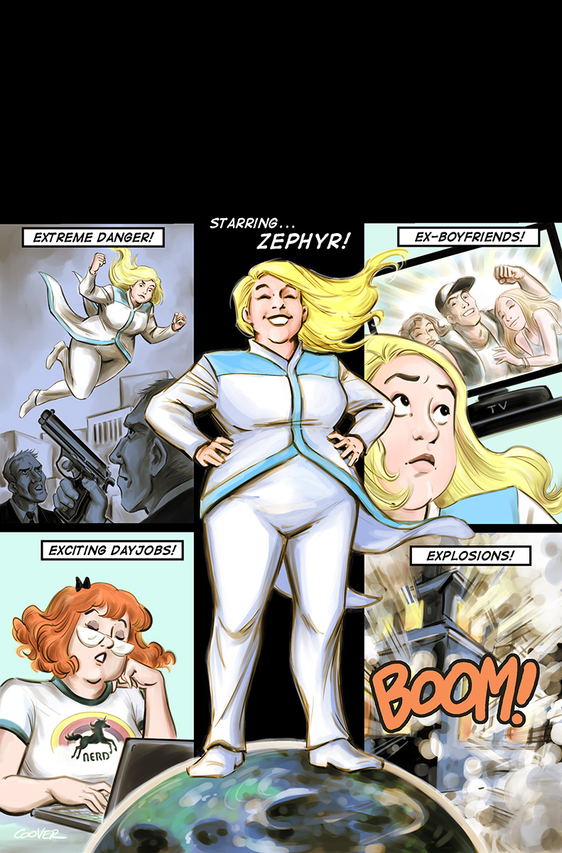 Houser: Basically, because she has this knowledge of superheroes and genre tropes, she sets out to do the traditional journalism thing, except that journalism isn’t as big a deal as it was in the 40s and 60s when these classic characters were conceived, so she ends up working for an online blog-type site.