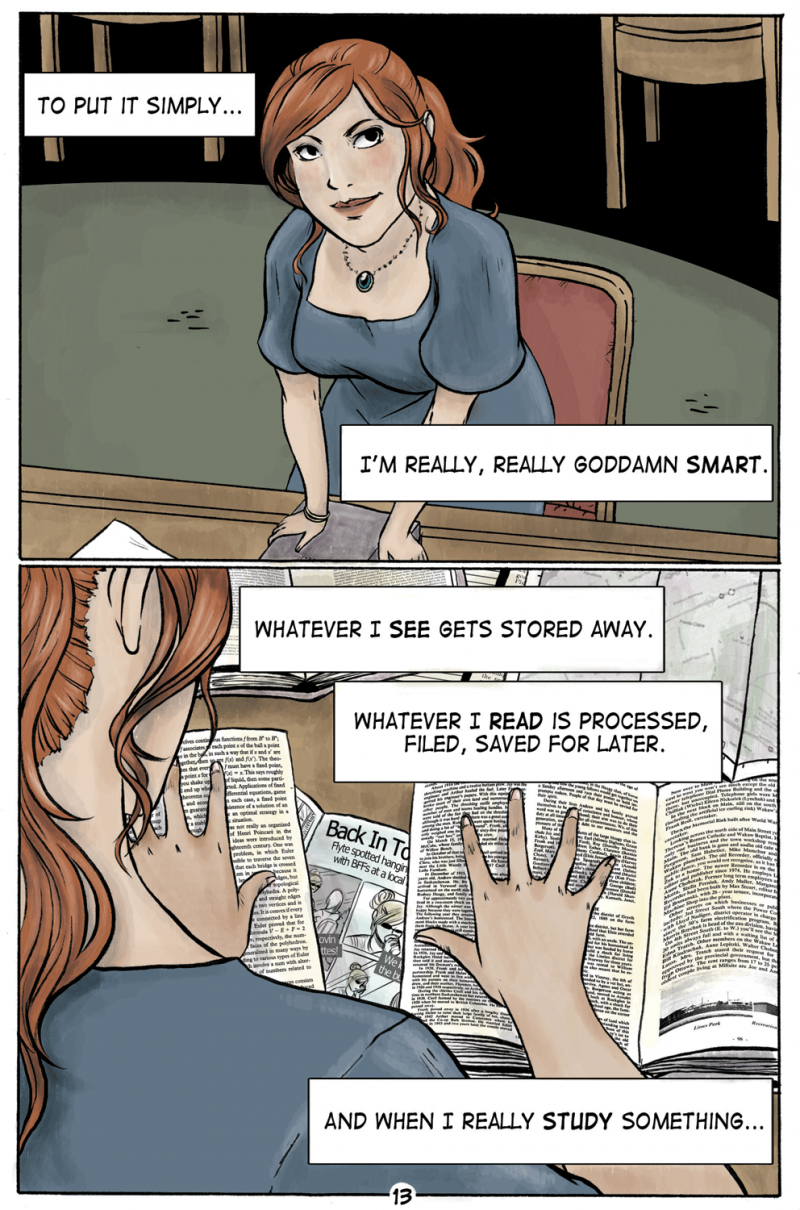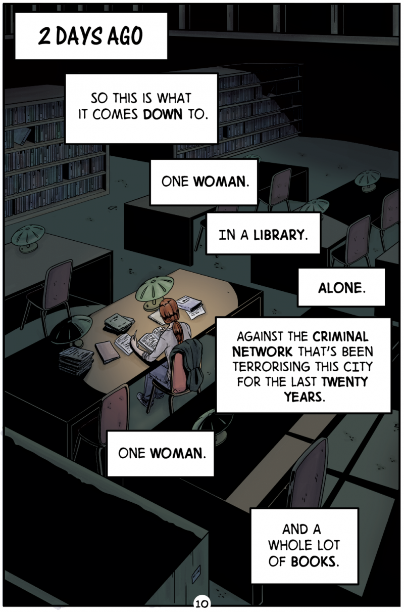 The idea is right there in the comic though, from the first issue onwards. Cat finally snaps and announces to herself that she does have a special ability, a kind of superpower, and she’s really, really smart. It is our “hero shot.” It’s a key moment of self-belief and assertiveness.