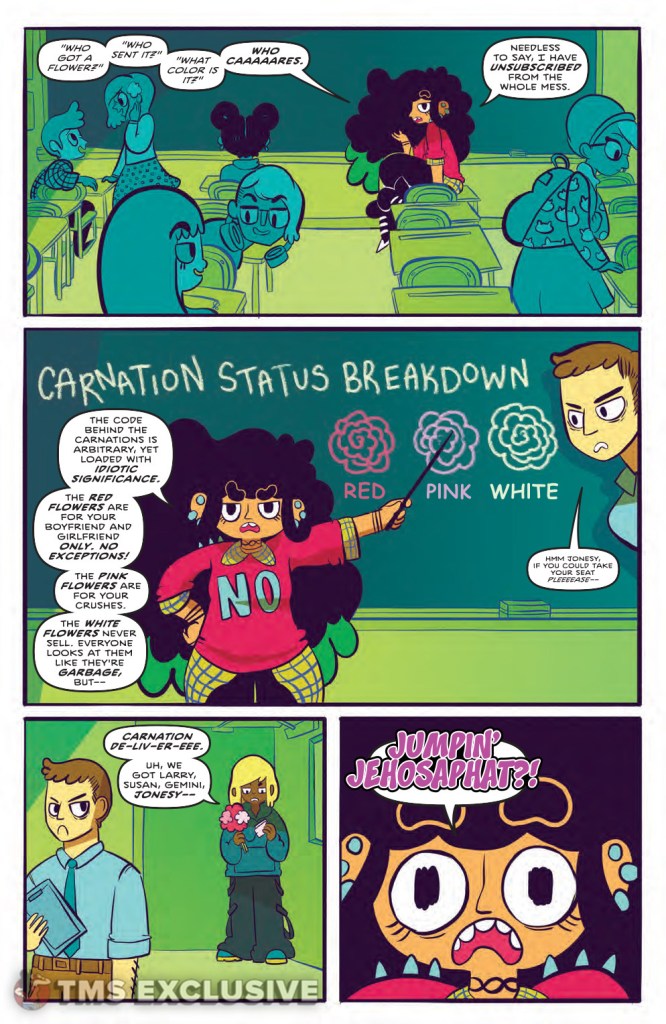 TMS: In page three of the preview, there’s a crowd panel full of Jonesy’s high school classmates. In that panel alone, there’s a very diverse group of faces. How important was it to the both of you to have that diversity? Was it something that just kind of happened, or was it a deliberate decision?