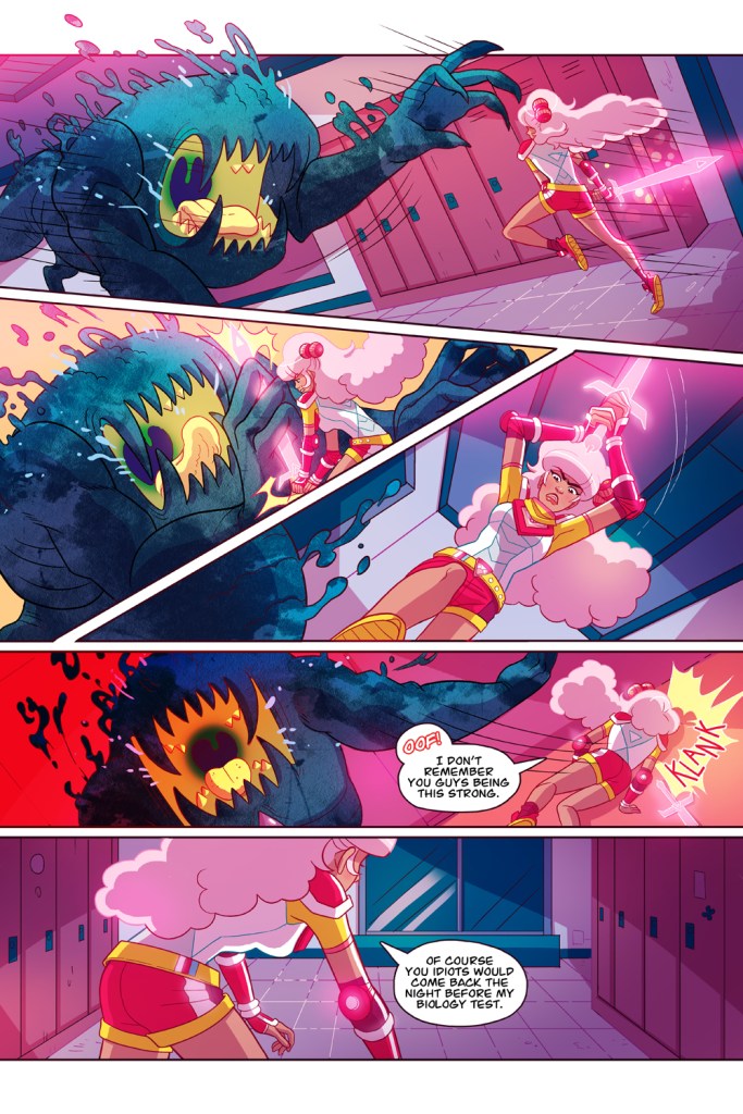 Panetta: Exactly haha. So when we start it’s been YEARS since the team has seen any action. Some people, like Emma, are really happy about that. She had some bad stuff happen to her during their first go around and she really doesn’t want to be a hero anymore. So when monsters show up out of nowhere and attack their town, it’s up to the girls to decide whether to just ignore it or to become a team again.