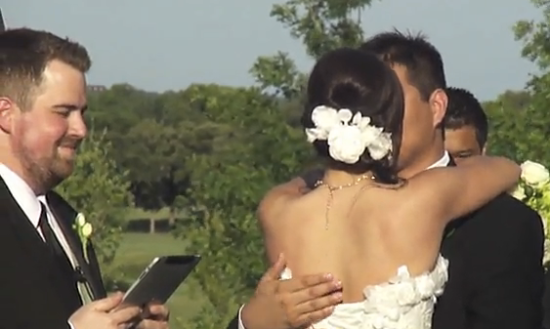 Inevitable? Maybe, but that doesn’t keep it from being a little sad: A recently married couple had their wedding conducted via iPad. As you can see in the still above and in the video below, the officiant is even fiddling with it when they kiss after taking their vows. What’s more, in the middle of the ceremony, the groom whips out his iPhone to Tweet and update his Facebook status.