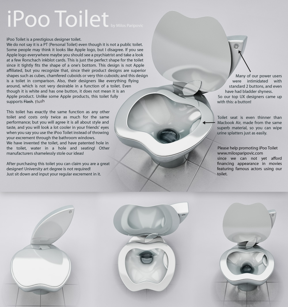 Finally: A toilet that combines the functional elegance of Apple products with something you poop in. Created by designer and programmer Milos Paripovic, this concept for a sleek toilet is meant to play on the (rather tired) joke about the cost of Apple products. In his own words, “This toilet has exactly the same function as any other toilet and costs only twice as much for the same performance[.]” I disagree. If Apple were to make a toilet, it would surely cost an arm and a leg but it would be the most satisfying toilet experience imaginable.