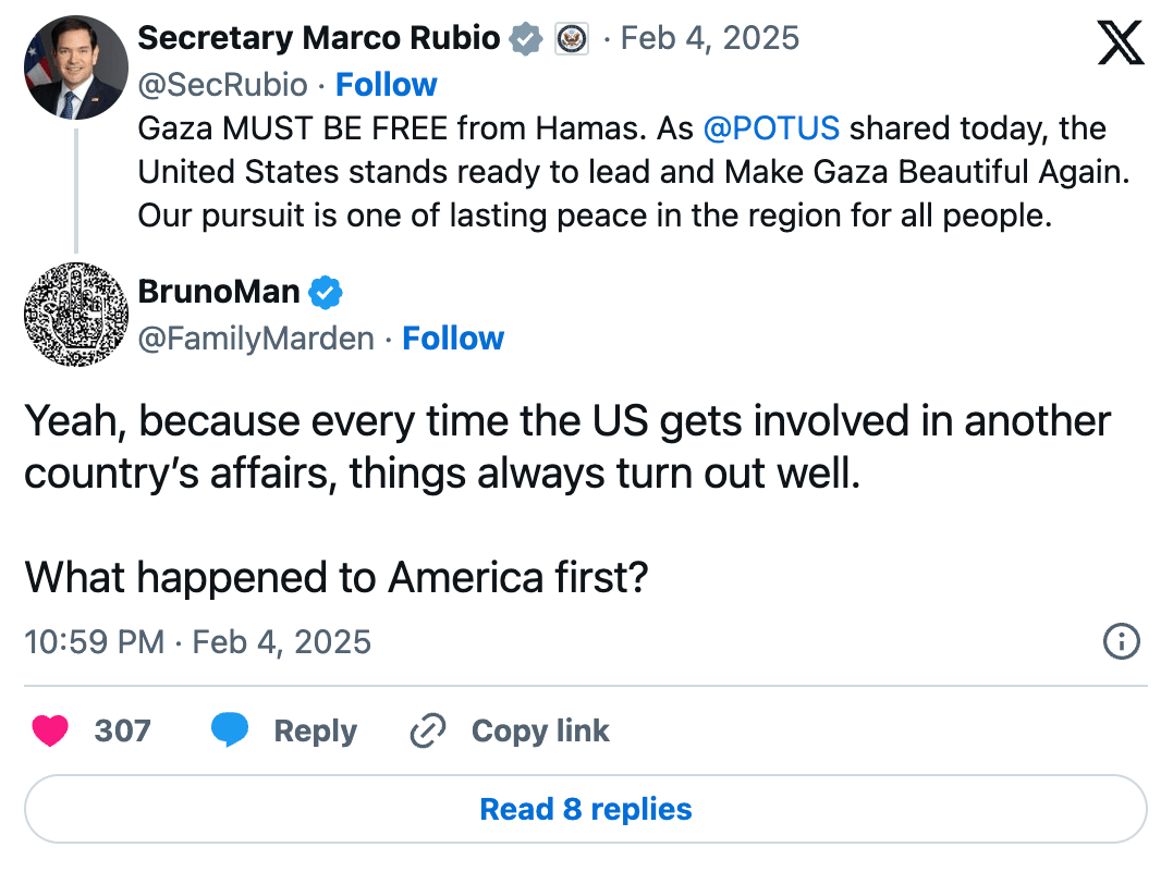 “Is this being America first?,” one user shot back at Rubio.