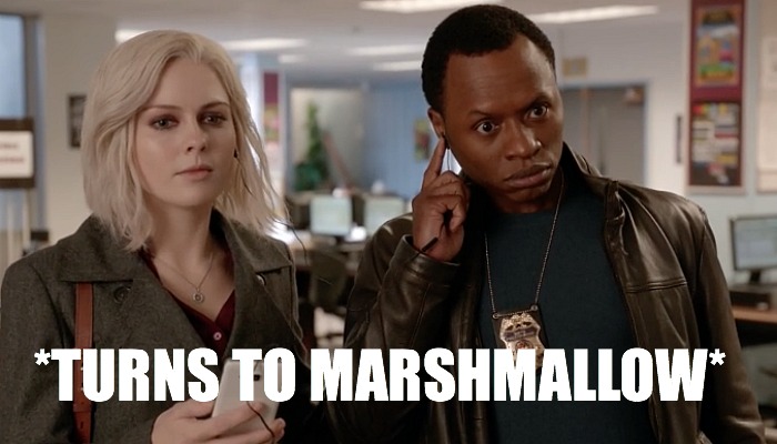 As you probably gathered from the title of the episode (“Fifty Shades of Grey Matter”), this week’s new iZombie brings all sorts of sex appeal. Not only does it focus on an erotica-based case (Liv eats the brains of a romance writer!), but there are definitely some sensually inclined moments between characters (new and old!) that I will get to in a hot (oh so hot!) sec.