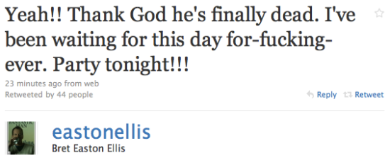 “Yeah!! Thank God he’s finally dead. I’ve been waiting for this day for-fucking-ever. Party tonight!!!”