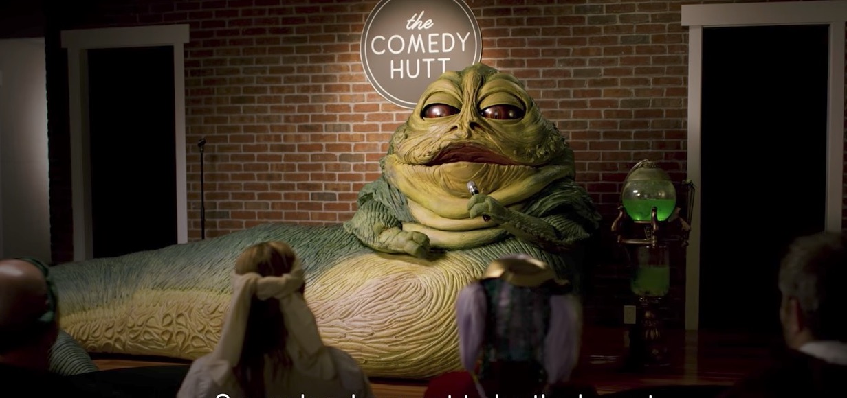 Have you ever wondered what the comedy scene looks like in the world of Star Wars? What kind of jokes Jabba the Hutt would tell as a stand-up comedian? Well, fan-video Youtuber A. Todd of Bellpond Films, a production company that makes “story-based, visually unique commercials, shorts, and feature films,” imagined exactly that in this parody of master classes starring insult comedian Jabba the Hutt.