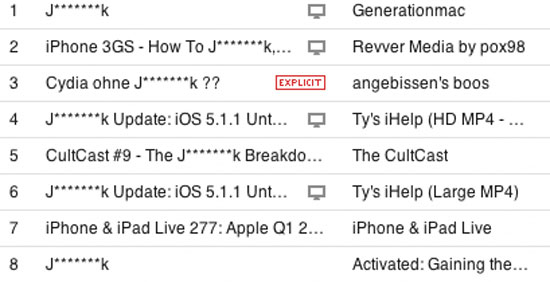 What’s amazing about the iTunes ban on jailbreak j*******k is that it has been applied to all media available through the online store. Podcasts, movies, TV shows, and even the Thin Lizzy classic, “J*******k.” The word still appears in the textual descriptions of media, but its use in titles is completely banned. This also extends to the iTunes mobile store.