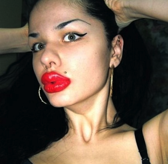 This is Kristina Rei. She’s a 22-year old nail technician in St. Petersburg, Russia, and she’s had over 100 lip-enhancing injections since she was 17. While some people’s motivation for getting cosmetic surgery can be extremely complex and personal, Rei sums up hers quite succinctly as quoted by The Sun: “I loved Jessica Rabbit’s huge lips. She was my idea of the perfect woman.”