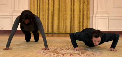 While promoting her fitness initiative for kids, Let’s Move, First Lady Michelle Obama mentioned that it was time to get kids off the couch and away from the TV. Jimmy Fallon, who is from the TV, took umbrage at this remark, packed his finest spandex, and made a little trip to the White House to challenge the First Lady to a round of physical activities. Jimmy, Jimmy, Jimmy. Have you not seen Michelle Obama’s arms? Did you really think you could beat her at push-ups? Either way, we are happy that this happened for entertainment purposes, so we’ll let you watch Obama and Fallon settle this like professionals.