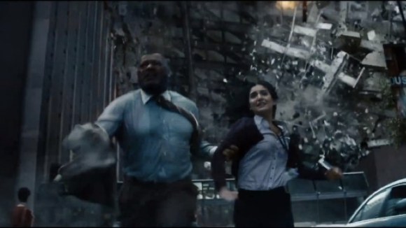 Digital Spy picked up on something interesting. Actress Rebecca Buller is listed as Jenny Olsen on the Man of Steel IMDB page. You can’t always trust the information there but when you add in this still from the trailer of Fishburne running with Buller, things get a bit firmer.