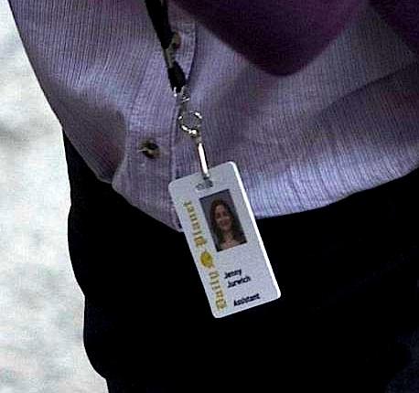 It appears that actor Rebecca Buller may not be playing Jenny Olsen, as we thought, but an assistant by the name of Jenny Jurwich, based on evidence from a higher quality image of a Man of Steel shot. Zooming in on Buller’s ID badge in this Man of Steel shot reveals that the character of Jenny, previously suspected to be a gender bent version of Daily Planet employee Jimmy Olsen, is not an Olsen. Click through for the close up image.