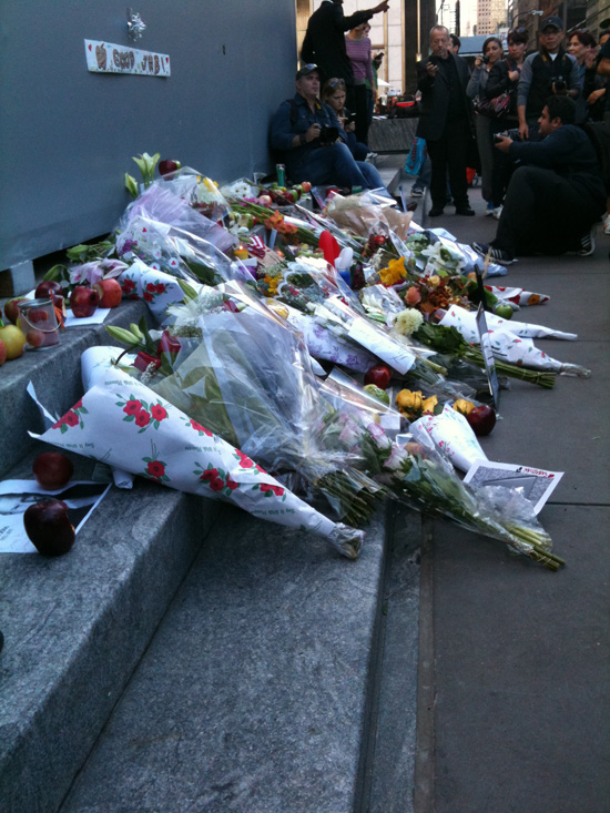 New Yorkers Build Shrine to Steve Jobs Outside 5th Avenue Cube