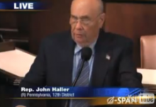 The video in question is of ‘Rep. John Haller of Pennsylvania’ reading out the “homeland terrorist preparedness bill” in which he keeps having to interrupt himself to say “classified.” A Google search quickly reveals that neither Haller nor the bill exist, though should you look closely at the video you will also see theOnion insignia on the lower right-hand corner, which probably should have tipped people off to begin with. Alas, this did not stop the video from making the rounds under the title “Martial Law Plans Revealed.”