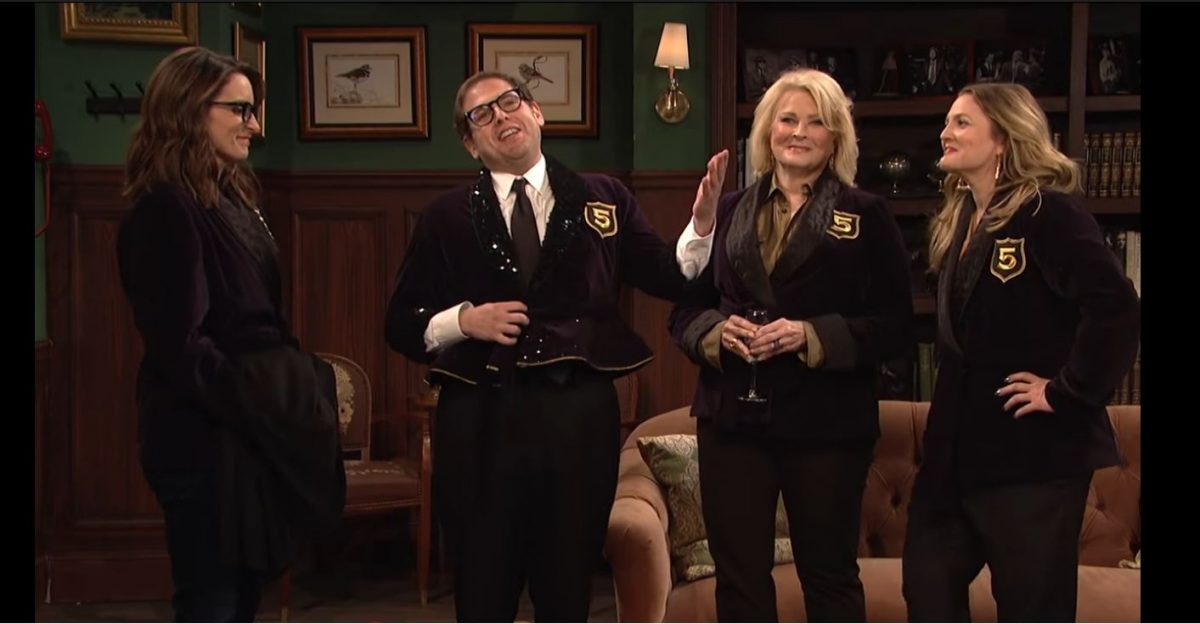 Last night, Jonah Hill took the stage as the host of Saturday Night Live for the fifth time, earning him entry into the illustrious Five Timers Club. Tina Fey was on hand to bring him into the lounge in the latest iteration of the classic sketch, an initiation that usually involves the host kicking back in the lounge alongside other five-timers and SNL all-stars.