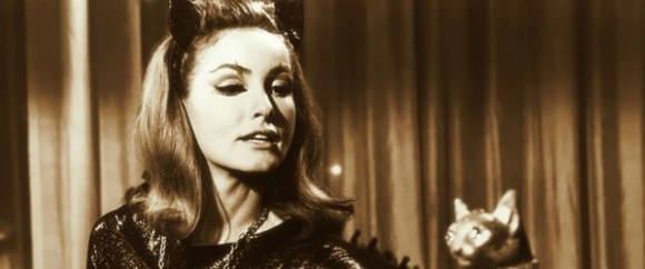 “This is what I get from people when they talk to me about the original Catwoman and compare it to the latter ones [Michelle Pfeiffer in Batman Returns (1992), Halle Berry in the atrocious Catwoman (2004)]. I think people prefer the more humorous one, the lighter one. People seem to complain that the recent ones are too dark in spirit. But that’s what reflects what’s going on. That’s what film and acting and everything is….I don’t envy someone that has to play Batman or Catwoman today. It was a heck of a lot more fun when Adam West and I did it.”