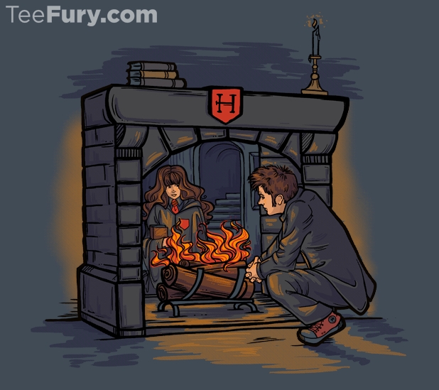 On sale today for just $11 on TeeFury.com, this magical design by Karen Hallion bringing together two of our favorite fandom characters. “The episode ‘The Girl in the Fireplace’ might be my all time favorite,” wrote Hallion. “And I am a big Potterhead, so it seemed an interesting idea to replace the woman that the Doctor meets in the fireplace, Madame de Pompadour—a strong female character—with another strong female character. By doing so, I wanted to create a new story with a commentary of my vision for these characters and illustrate a natural way in their stories for them to interact that would alter their outcomes in a meaningful manner.” This particular image, “The Witch in the Fireplace,” is for sale as a t-shirt on TeeFury for today only but if you miss out, you may be able to find it in her RedBubble store later.