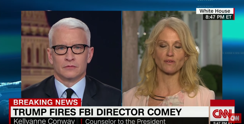 We didn’t ask for Kellyanne Conway to make a comeback but here she is, ready to dish out a new onslaught of alternative facts. This time, she’s accusing Anderson Cooper of sexism for rolling his eyes as she went off on another nonsensical tangent. Cooper’s show played past clips of Trump praising former FBI Director James Comey, who was recently fired for “not doing a good job” according to Trump and not at all because he was investigating Trump’s ties to Russia.