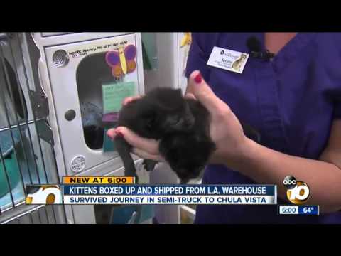 Two tiny kittens, now named Mouse and Wifi, were accidentally boxed up and shipped more than one hundred miles between Los Angeles and San Diego. Fortunately, they were unboxed by some very nice people who made sure they were sent right off to one of the few ’round the clock kitten nurseries in the country. Now they’re fat, happy, and well on their way to getting adopted into loving homes.