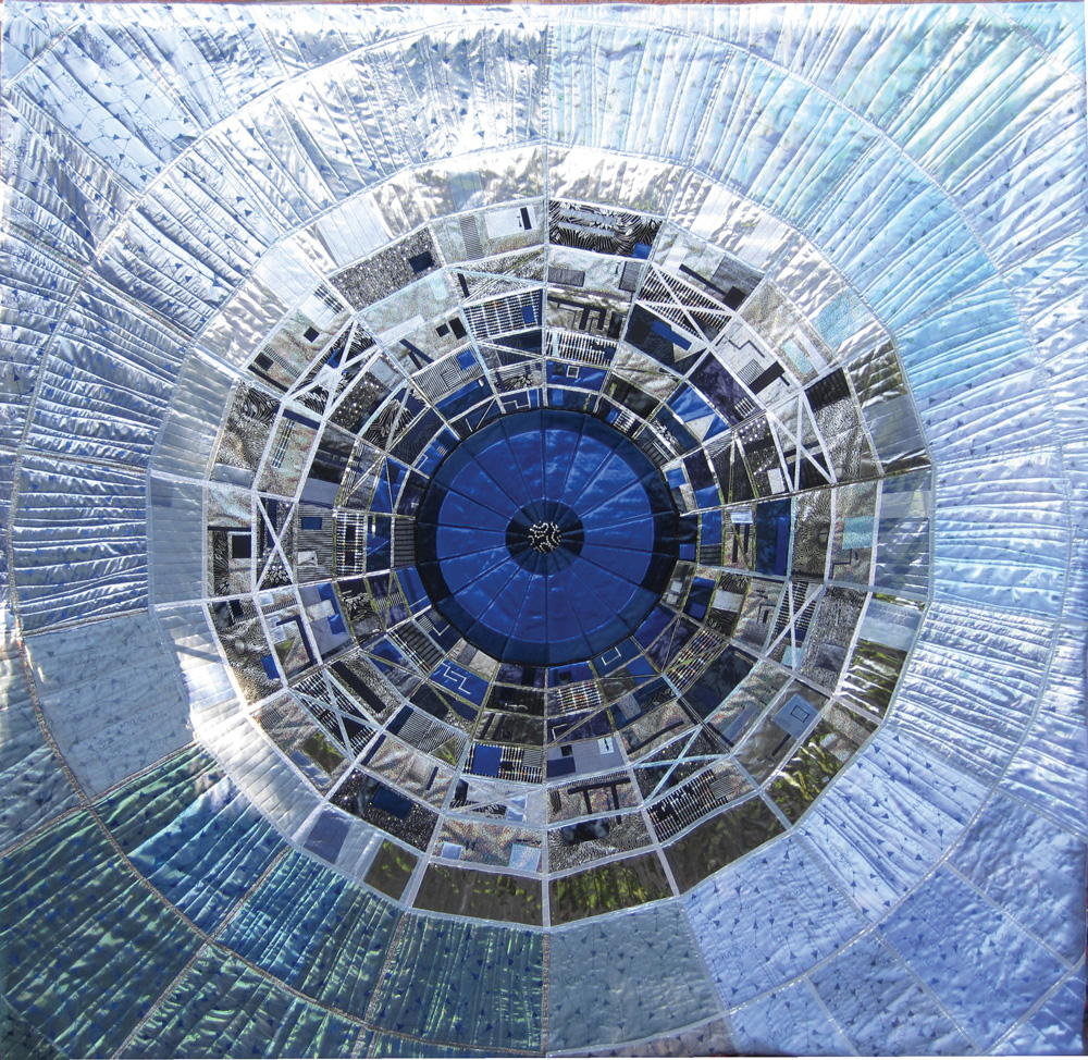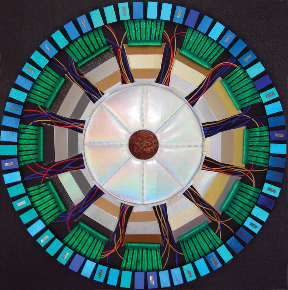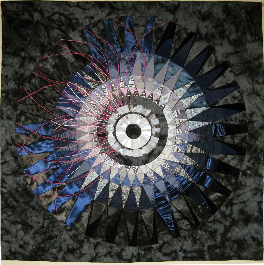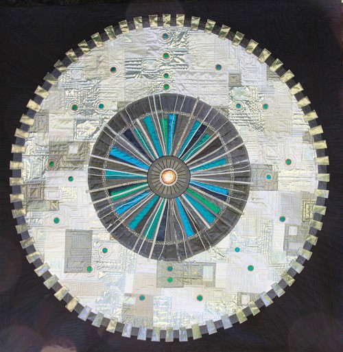“I am delving into some of the concepts put forward by physicists about wave particle duality, supersymmetry, and string theory,” she says, going on to explain that she bought some fiber optic cable and is experimenting with sewing it into fabric. “There is so much more I could do yet with that subject matter.”