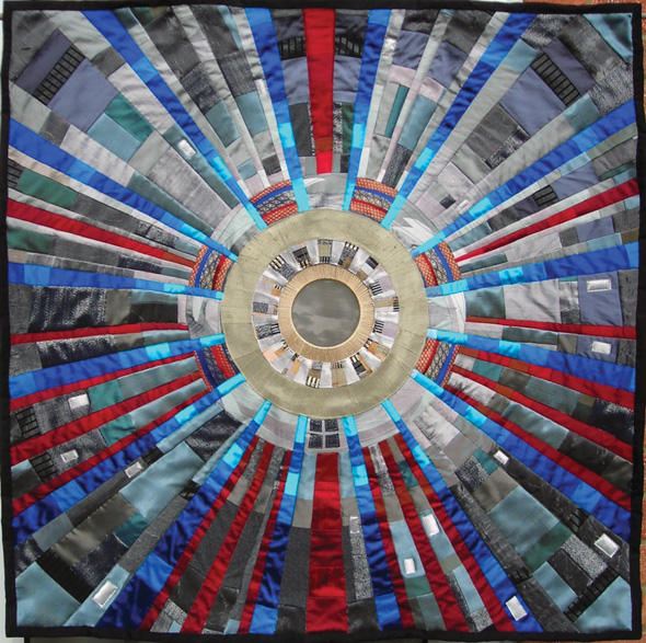 Another reason she chose the LHC as inspiration: she’s a little bit over the “pretty-pretty,” nature-inspired quilts that she always sees. Here are her science-inspired quilts, starting with “Hadron4”: