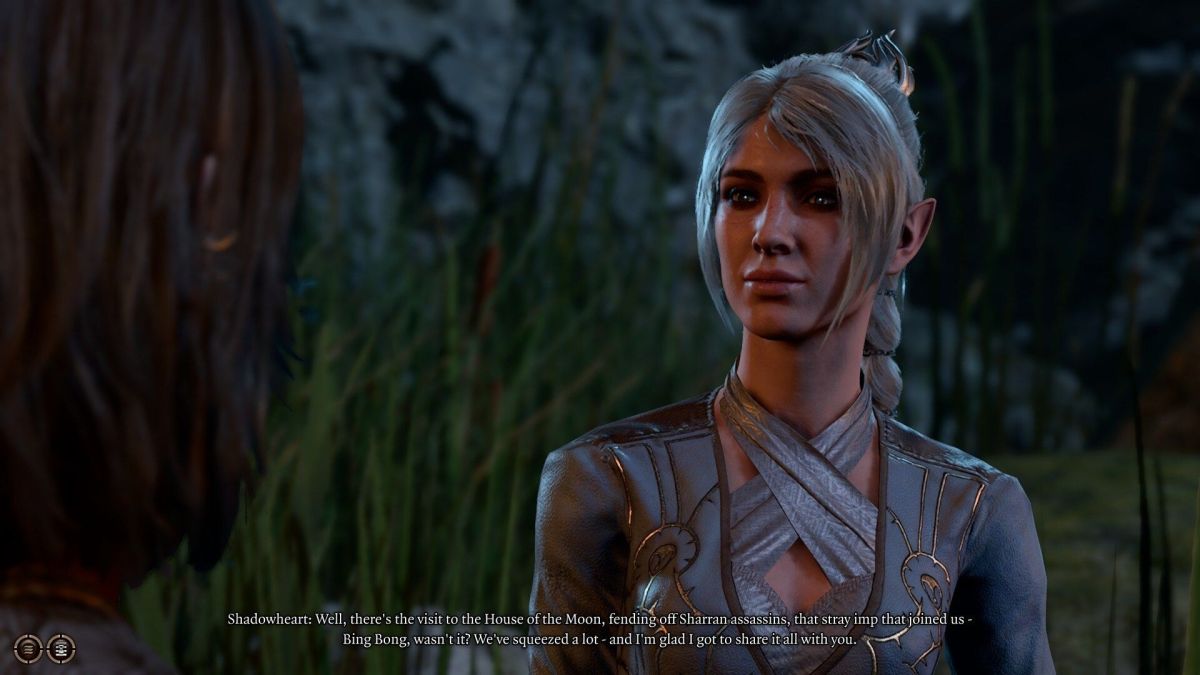 I’m not sure how to make all the choices to trigger this (other than having Withers alive and friendly towards you by the end), but several players who romanced Shadowheart found the Bing Bong canonization. Nervous about seeing everyone for the first time after all the adventuring, Shadowheart talks about deciding how y’all will be divvying up talking points with everyone. It’s kind of like making a game plan before going to one’s high school reunion or a family gathering after years apart.