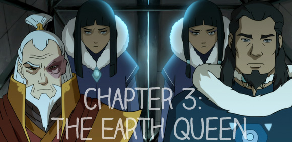 Korra and Asami finally get to the village to collect the Queen’s tax money, but of course they get attacked by bandits who look like they belong in a Norwegian metal band. The girls fight together in pretty much the best bending scene in the entire episode. The badits run, screaming that the money belongs to the people, not the queen. Clue number one. The cash in tow, Korra returns to the Queen. When asked about the airbenders the Queen brushes Korra off, telling her “There are no airbenders in Ba Sing Se.” Clue number two.