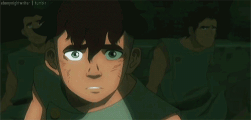 Meanwhile, everyone (okay, Jinora) notices that Kai’s missing! Mako and Bolin end up searching for him, and find the little jerk robbing people in the streets. After a brief chase, Kai gives them the slip and the brothers find themselves suddenly stuck in the nasty lower ring of Ba Sing Se. There, after a brief mix up about stealing fruit, they meet their cousin, Tu and then the rest of the family too! Cue super cute, bittersweet and awesome family reunion. Eventually the topic of airbenders pops up and the brothers learn the Dai Li have been snatching any known airbender from the city streets.