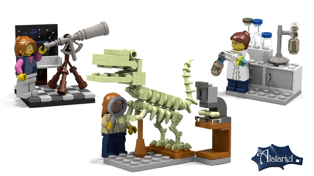 The LEGO team responsible for making sets based on fan ideas recently put out their list of finalists for production, and on that list was this awesome science-themed lady minifig set by Alatariel. So how can we ensure that this set is actually made? By getting our cutest representatives to send letters to LEGO about gender equality, of course.