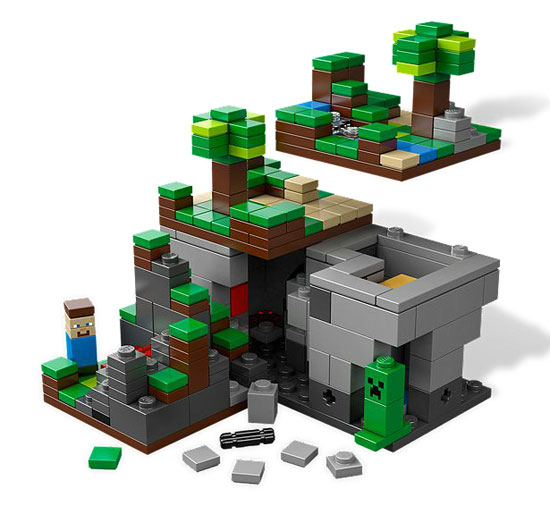 The Minecraft set is modular by design, allowing you to reconnect and reconfigure it as you like. Each section has an underground cave area and a removable lid covered with the blocky trees and grass of the Minecraft world. Interestingly, the lids are secured with a smooth, two-stud plate for easy removal. It even comes with unique Steve and Creeper microfigs.