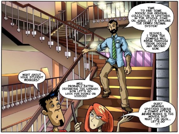 McPherson College, a small, liberal arts college in Kansas, wanted to find a way to teach everyone how they can best utilize the resources of their library. So C. Michael Hall, Matt Upson, and Dustin Evans thought they’d create a comic series explaining the library — during a zombie apocalypse. And even though it was only meant for the McPherson College community, 650,000 people have downloaded the free PDF, with 79 new downloads a day. Want to take a look inside? Bring your cricket bat!