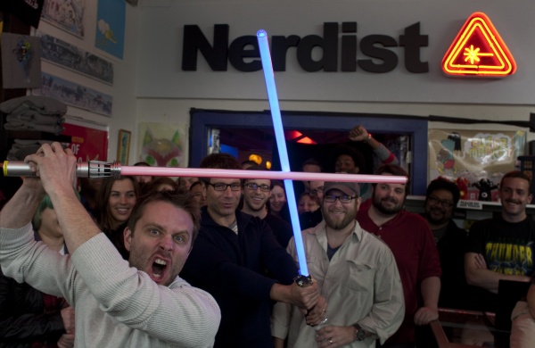 Not attending Comic-Con International in San Diego this year just started to hurt a lot more. Chris Hardwick (of The Nerdist podcast and related activities) is joining forces (yeah, I said it) with Lucasfilm Ltd., Nerdist Industries, Octagon, Machinima and well, you, if you can make it for a Star Wars lightsaber Olympic-style relay race to open SDCC this year. The course will begin in Santa Monica, California and participants will pass the lightsaber every quarter mile all 136 miles to San Diego. It’s called Course of the Force and it’s going to benefit the Make-A-Wish Foundation. Watch the video and read on for more details.