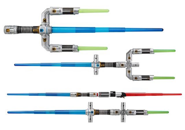 Now all Padawan learners can complete their journey and become Jedi masters the old fashioned way in real life: by building their own lightsabers. The Jedi Master Lightsaber set was unveiled by Hasbro at the New York Toy Fair and comes with a standard lightsaber with lights and sounds, two smaller blade attachments, a hilt expansion, and several connectors for configurations to out-ridiculous even J.J. Abrams.