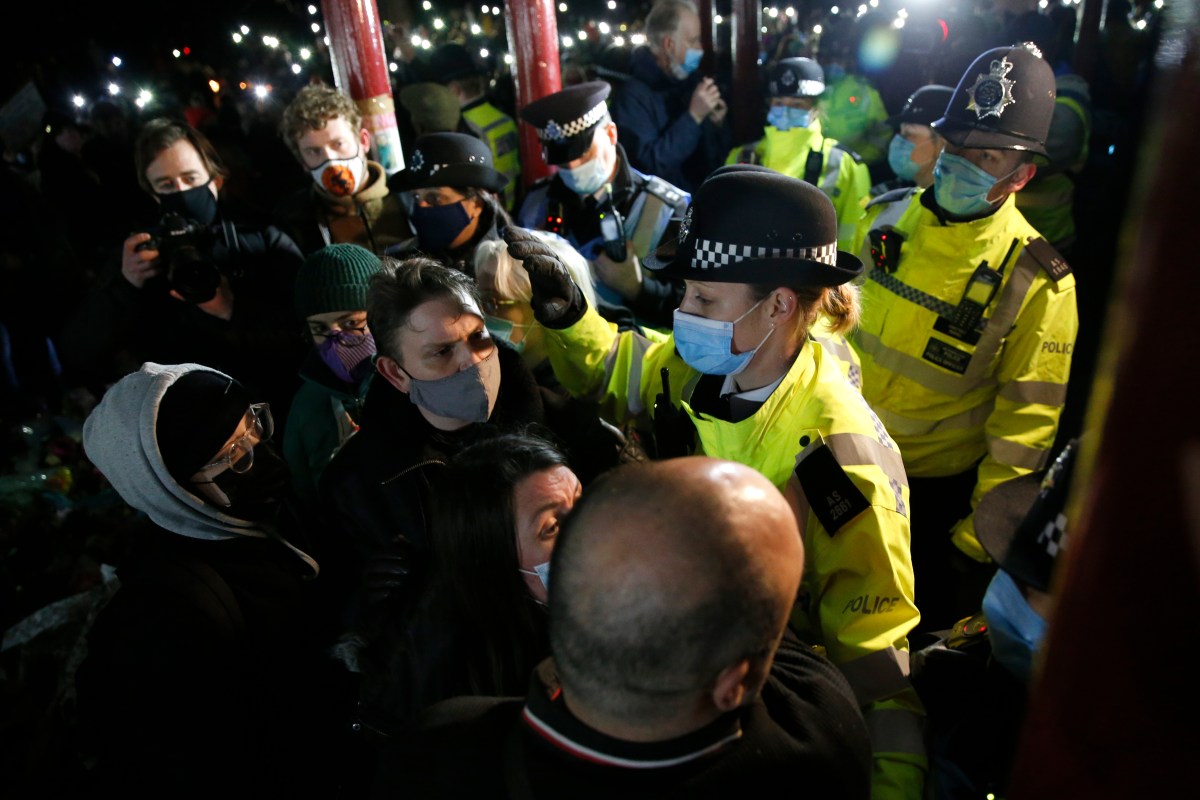 But that didn’t stop thousands of peaceful protesters from flocking to Clapham Common, bearing flowers and candles, and chanting “Shame on you!” and “How many more!” The protesters also chanted “This is a vigil, we do not need your services,” at the police present for the protest. In response, the Metropolitan Police began corralling protesters, throwing them to the ground and arresting them. Videos of police brutality at the vigil quickly spread on social media, as outrage against the police grew.