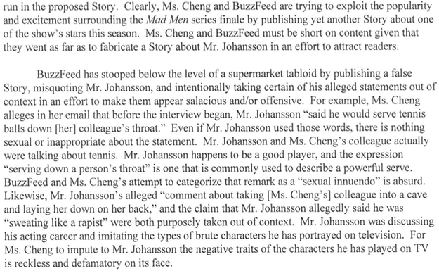 *Sigh* What’s sad about this is that the women at Buzzfeed didn’t feel safe enough to say anything at the time, because sadly, stuff like this is still par for the course, in media and in pretty much every other industry. Cheng waited three weeks to talk to Johansson’s publicist about it, and what did she get in return? A dismissive letter from Johansson’s lawyer: