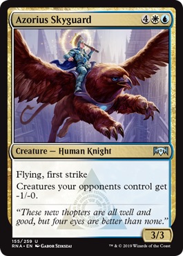 The two cards we are excited to share with you today are Azorius Skyguard, a flying creature with an awesome ability, and Arrester’s Admonition, an awesome instant.