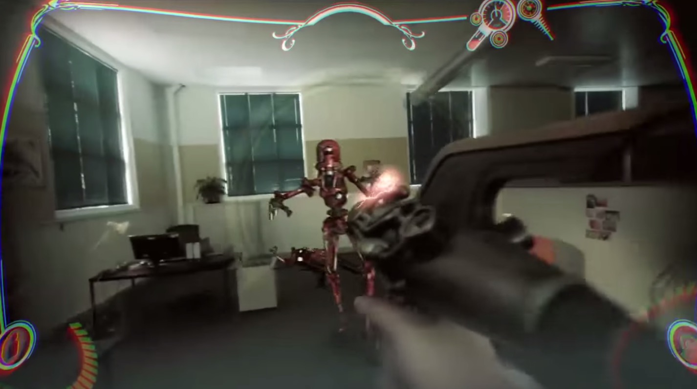 The player doesn’t do a lot of moving around, which means the headset could still be wired to a powerful computer at this point, and the placement of the CG robots involves minimal interaction with the environment to simplify things. The gun is very obviously a real prop which seems to be fired by making a recoiling motion of the hand. I wouldn’t be surprised if its effects were augmented to make the video more interesting, but it’s certainly possible with current technology to detect that motion.