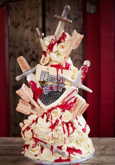 “The daggers, swords and arrows were all created from chocolate, plunged into the cake and chocolate, revealing weeping bloody wounds,” said Choccywoccydoodah founder Christine Taylor. Stahp.