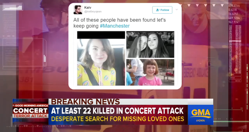 People also used the #Manchester hashtag to locate their loved ones. Pictures of missing young people have hundreds and thousands of retweets each. And with so many people banding together, there have already been some heartwarming outcomes.