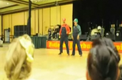 This swing dance inspired by the Mario Bros. took place at the 2011 Camp Hollywood National Jitterbug Championship. Despite some glitches with the music — honestly, that’s what you get with 8-bit, isn’t it? — dancers Morgan Day and Emily Wigger turned out a very hoppin’ number. Next time, they should just tell the DJ to “blow on it.”