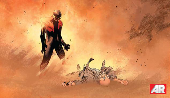 The big reveal is that Scott Summers, known as Cyclops, will be offing his substitute father figure Charles Xavier. Professor X will be meeting his doom in Avengers vs. X-Men #11, out today, and is supposedly staying that way. Topless Robot sums up why Marvel thinks this time is different: