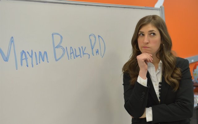 Mayim Bialik: I was sort of playing an exaggerated version of myself. Obviously they didn’t want Amy Farrah Fowler doing it. They wanted me to be doing it. We kind of thought it was fun to be playful about it, but I think also because I’m the only female I got to give it a little bit of a theatrical flair. I think also because I’m the bona fide neuroscientist we felt like we had a little creative room as well to be sort of playful about it.