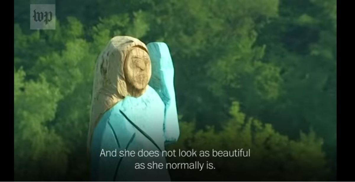 The news story here is that a statue of Melania Trump in her home town has been burnt down. But… the statue. https://t.co/OLSffT8i1W pic.twitter.com/qVWMfwv9P3