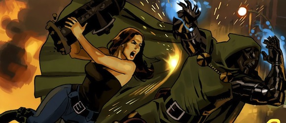 Marvel is moving much more quickly on its putative Netflix series than it has on some other TV projects in its history, and has already named writers for two of them, Drew Goddard on Daredevil and Melissa Rosenberg on Jessica Jones. Rosenberg’s involvement is particularly exciting as she was involved in a previous effort at getting a Jessica Jones series (pictured above, clocking Doctor Doom with a fire hydrant) to screen, one that sounded like it was shaping up pretty well. (Also, Carol Danvers was in it.)
