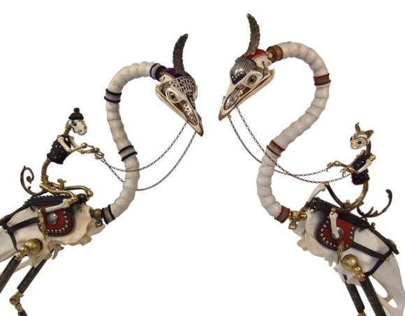 Artist Jessica Joslin has created a collection of imaginary animals using metalwork and skeletons. According to an interview with Hi Fructose, she has had a “cabinet of curiosities” since childhood and was more fascinated by animals created unnaturally. And these are gloriously unnatural.